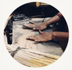 Next, traditional Ayurvedic recipes are consulted for the most authentic production process and careful creation of our exclusive incense varieties. And finally the products are hand-rolled to finished perfection by knowledgeable Indian craftsmen in a lineage spanning many generations.